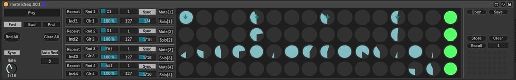 This is a max for live device that allows you to sequence 4 tracks using the matrix object.